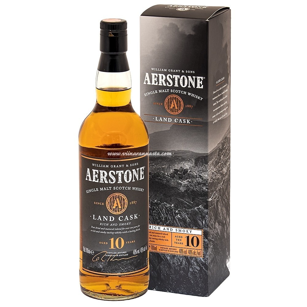 Aerstone Single Malt 10YO Land Cask Smoky 40% 0.7 L GB on Aerstone 10YO Land Cask single malt, suitsusema profiiliga šoti viski. Maitsest leiab turbasust, suitsu ja tumedamat vürtsikust, sobides neile, kes eelistavad jõulisemat stiili. Alkoholi sisaldus 40%. Pudeli maht 0.7 L.