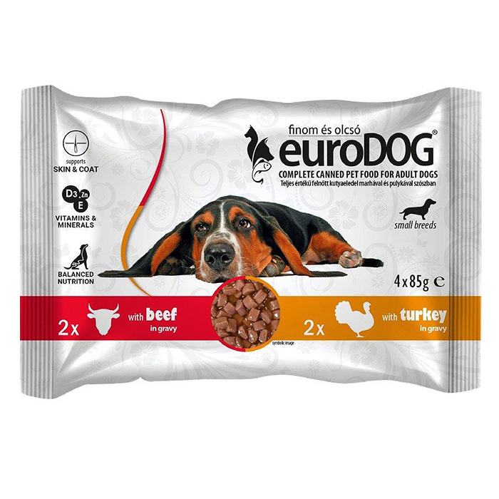 EURO DOG koeratoit 4x85g, kokku 340g. 2x veiseliha ning 2xkalkuniliha