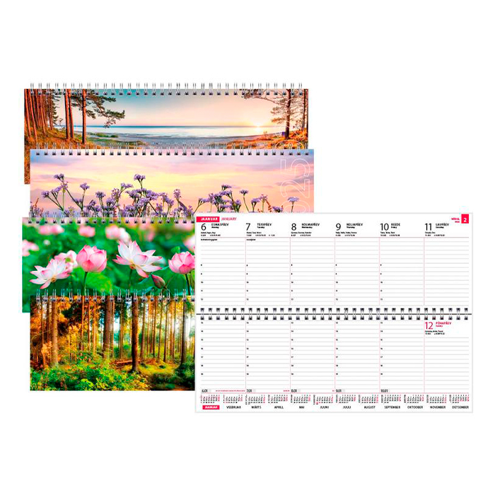 Plastkaante ja nädalajaotusega spiraalköites kalender, lk. mõõt 93×170 mm. Kalendaarium sisaldab riigipühi, riiklikke ja rahvakalendri tähtpäevi, lipupäevi, nimepäevi, 42 riigi pühi lühenditena, päikese tõusu ja loojangu aegu, kuu faase, aastaaegade alguseid, käesoleva ja järgneva aasta plaane, aasta tabelkalendreid, foneetilisi tähestikke.