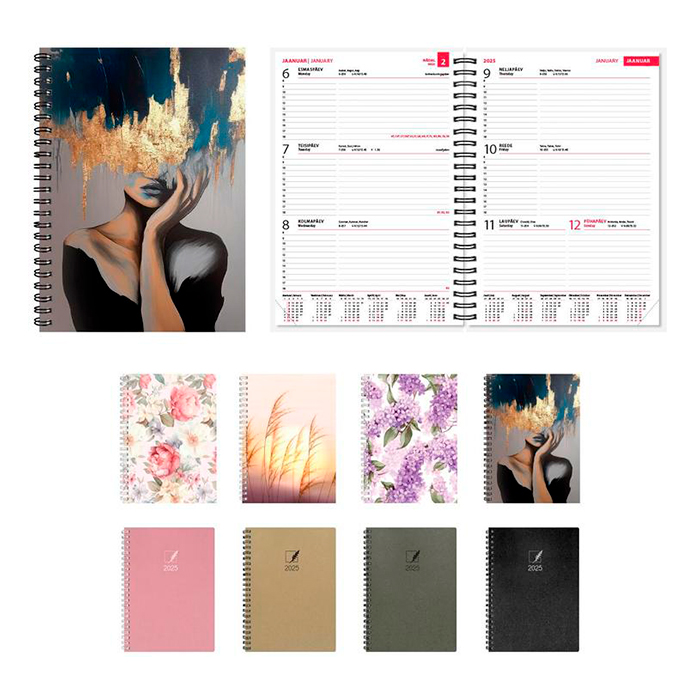Kunstnahast kaantega kõvas köites kalender, lk. mõõt 145×202 mm. Kalendaarium sisaldab riigipühi, riiklikke ja rahvakalendri tähtpäevi, lipupäevi, nimepäevi, 42 riigi pühi lühenditena, päikese tõusu ja loojangu aegu, kuu faase, aastaaegade alguseid, käesoleva ja järgneva aasta plaane, aasta tabelkalendreid, foneetilisi tähestikke, mõõtühikute teisendamise tabelit ja tabeleid enamuse maailma riikide telefoni koodide, valuuta, ajavahe jne kohta, 16 lk Eesti kaardivihik. Kaane siseküljel Euroopa ja maailma kaart.