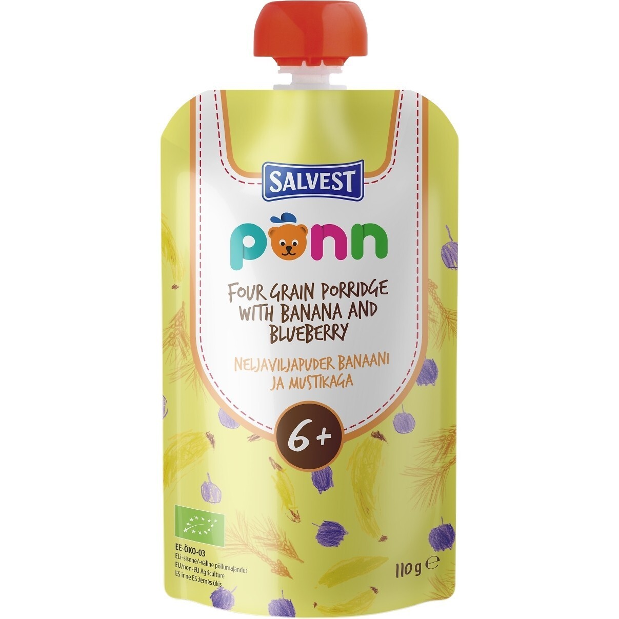 Ökoloogiline Neljaviljapuder banaani ja mustikaga on valmistatud vaid parimast mahedalt kasvatatud toorainest. Toode sisaldab troopilise maitsega banaanipüreed ja koduste metsade maitsega mustikapüreed. Soovitame imikutele pärast 6. elukuud. Kõik Põnni lastetoidud on valminud koostöös lastearst Reet Raukasega ning testitud Eesti beebide poolt.